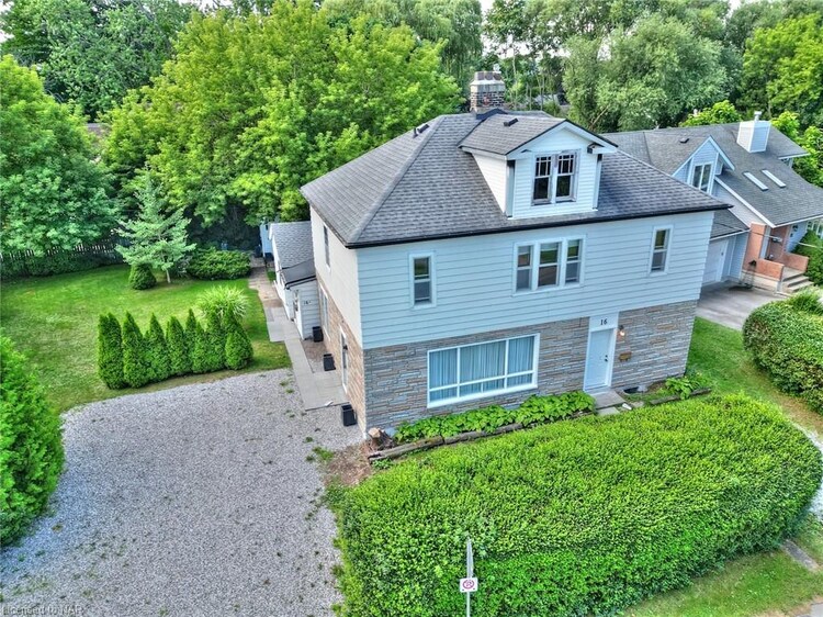LARGE LEGAL DUPLEX near the Lake! This amazing development opportunity includes a 2467 SQFT LEGAL DUPLEX plus second ARN known as 16 1/2 Lakeside Drive situated on a corner lot with upper views of the LAKE and a BLOCK FROM THE BEACH! This quaint and desirable community of Port Weller is located on the Niagara-on-the-Lake side of the canal and is walking distance to the beach, walking trails along the canal, parks and a short drive to the heart of NOTL and wine country!! This property includes three parcels (as shown on survey) and two separate roll #'s (1 being a duplex and the other vacant land) with R2 Zoning. Develop the second parcel with existing building or develop the entire property or use the existing duplex for rental income. The main floor is an updated 4 bedroom, 1 bath unit that has been well maintained with private laundry and so much space! The large living room is bright and inviting with large windows and a garden door access to side yard. The upper unit offers 3 bedrooms and 1 bath with an open concept kitchen/living room that exudes original charm with its 9 ft ceilings, wood burning fireplace and transom windows over every door. This unit has a private front foyer entrance that includes laundry hook-ups. This unit is ready for your creative updating and offers serene views of the lake!! Both apartments are on separate meters (200 amp for main floor and 125 amp for second floor). LIVE IN ONE UNIT AND RENT THE OTHER OR RENT BOTH!! The basement has just been waterproofed and reinforced professionally. Property vacant so you determine the rent amounts! Check out video tour~