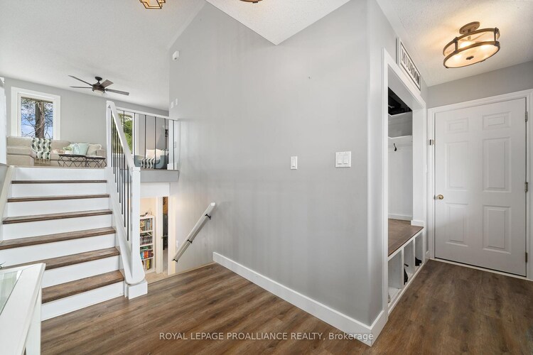 Welcome to this beautifully updated 4-bedroom, 3-bathroom family home, ideally located in a quiet, established neighbourhood just a short walk to local schools, shopping, and the charm of downtown Brighton. Thoughtfully designed with growing families in mind, this home blends stylish finishes with functional living across two spacious levels. A generous foyer with garage access leads into a bright, open-concept main floor where everyday living and entertaining come together effortlessly. The fully renovated kitchen is the heart of the home, featuring a large island with natural stone countertops, tiled backsplash, farmhouse sink, and ample space for gathering. The adjoining dining area easily accommodates family dinners, while the inviting living room offers a comfortable space to unwind. Step outside through garden doors to an elevated deck overlooking a private, mature backyard, complete with a stone patio-perfect for outdoor dining, relaxing, or adding a future hot tub. The fully fenced yard offers both privacy and low-maintenance appeal. The main level includes two bedrooms, highlighted by a spacious primary suite with a beautifully finished 3-piece ensuite, along with an updated 4-piece main bath. The fully finished lower level is ideal for family living, featuring two additional bedrooms with large above-grade windows, a full 4-piece bath, and a generous rec room anchored by a freestanding gas fireplace-perfect for cozy movie nights or a kids' hangout zone. A charming under-stair play nook adds character, while a separate laundry room and a versatile storage space (with potential for a 5th bedroom) complete the level. With recent upgrades including an open-concept kitchen renovation, updated bathrooms, and new deck and patio, this move-in-ready home offers comfort, style, and flexibility for modern family life. Set in a welcoming community just steps to schools and minutes to shops, cafés, and everyday amenities, this is a home designed to grow with you.