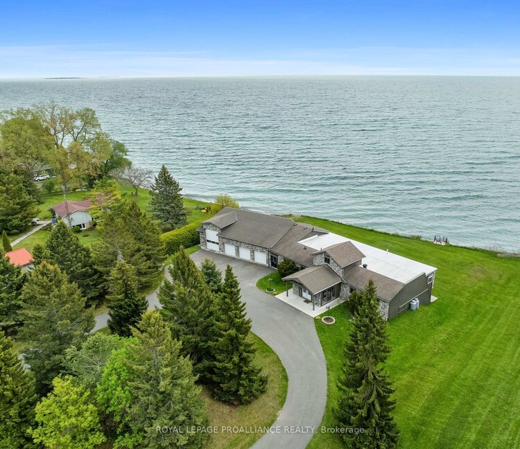 Welcome to your private Colborne Estate - where luxury living meets the shores of Lake Ontario.Set on a tranquil, park-like 1.84-acre lot with your own private beach, this custom-built bungalow offers 5,074 sq ft of exceptional living space designed around 1 thing: The Lake. Floor-to-ceiling windows span the entire south side on both levels, framing unobstructed panoramic views of Lake Ontario that change with every season & every hour of the day.The 3,446 sq ft main floor features a split bedroom plan, anchored by a chef's kitchen overlooking the water - complete with an extended island, stunning waterfall quartz counters, & seating for every friend & family member you can gather. The primary retreat includes a private sitting room, en-suite washroom & multiple large closets. 3 additional bedrooms, 2 washrooms, & a generous family room complete this layout. & for year-round wellness, a cedar-lined pool room houses an indoor swim spa with a lap current & convenient motorized cover.The lower level is a 1,628 sq ft fully finished, self-contained residence with 5 walkouts to the lake - all with floor-to-ceiling windows flooding the space with light & waterfront views. It features a full kitchen, separate laundry, & a split-bedroom layout with a primary retreat including ensuite washroom & kitchenette, plus 2 additional bedrooms & 2 washrooms. An ideal guest suite, in-law apartment, or income-generating rental.Storage & flexibility abound: a 3-car garage, plus a 4th RV or large boat garage with EV & RV charging. Workshop or storage loft above the garage, & a 3rd-floor loft with future potential for additional living space.Zoned for both family living & Bed & Breakfast use, this property presents an exceptional lifestyle opportunity or income-generating investment.All of this just 10 minutes from Highway 401, 1 hour from Toronto, steps from downtown Colborne & Brighton, minutes to Presqu'ile Provincial Park, & a scenic 30-minute drive to Prince Edward County.