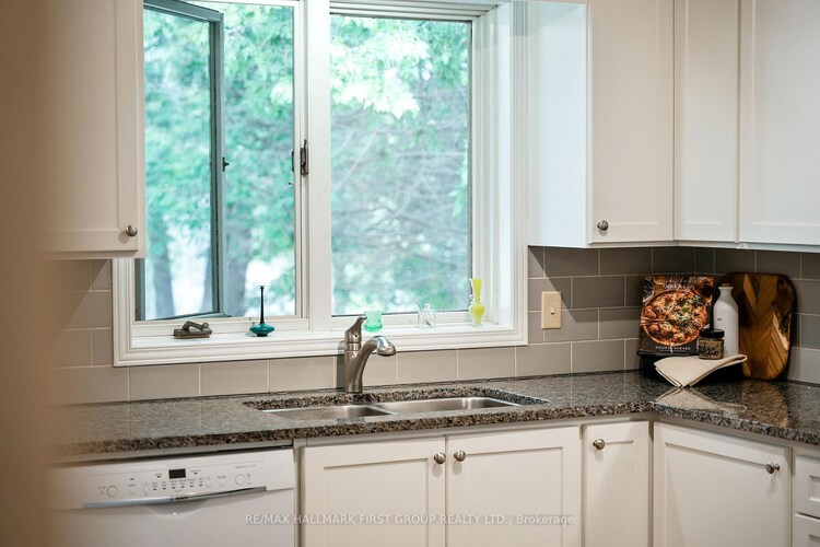 Classic charm meets country living in this timeless brick bungalow on 25 forested acres. Offering the ease of one-level living with the added flexibility of a finished lower level and separate entrance, this home suits multigenerational families or those seeking in-law potential. A covered front entrance leads into bright and airy principal rooms where natural light pours through a large picture window in the living room, framing serene views of the surrounding landscape. A cozy wood stove with a stone hearth adds warmth and character. The open-concept dining area features a walkout to the back deck, which is ideal for outdoor entertaining or simply enjoying peaceful country mornings. The kitchen is stylish and functional, with white cabinetry, matching appliances, and a classic tile backsplash. Two spacious main-floor bedrooms, each with its own full ensuite, while a powder room off the front hall serves guests comfortably. Downstairs, the finished lower level expands the living space with a generous rec room, games or media room, office area, large bedroom, and laundry room with ample storage. A separate entrance provides privacy and versatility for extended family or guests. Outdoors, take in the sights and sounds of nature from the deck or explore the surrounding forest. The attached garage includes an additional storage room, extending versatility. All this country tranquility is just 10 minutes from town amenities and convenient 401 access, a perfect blend of seclusion and accessibility. Note: NEW Furnace installed September 2025.