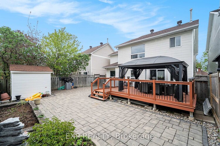 OPEN HOUSE SUNDAY MARCH 8TH 2-4PM! Welcome to this beautifully upgraded 4-bedroom detached home located in a wonderful family-friendly neighbourhood. Bright and spacious throughout, the home offers a warm and inviting layout ideal for both everyday living and entertaining.The open-concept living and dining areas are filled with natural light from charming bay windows, creating a comfortable and welcoming space. The stylish kitchen features quartz countertops, a striking waterfall island with breakfast bar seating, custom cabinetry, and stainless steel appliances. The eat-in area flows seamlessly into the cozy family room with a gas fireplace, perfect for relaxing or gathering with family and friends.Upstairs you'll find four generously sized bedrooms, including a spacious primary suite with a walk-in closet and a private 4-piece ensuite featuring a granite vanity and a relaxing soaker jacuzzi tub. Another full 4-piece bathroom conveniently serves the remaining three bedrooms.The fully finished basement provides additional living space with a large recreation room, a full bathroom, and a versatile den or games room that can easily function as a home office, gym, or playroom.Step outside to enjoy a beautifully maintained property featuring an interlocked front driveway that enhances curb appeal and a fully fenced backyard with a large deck and charming gazebo - perfect for outdoor entertaining. Ideally located close to parks, schools, shopping, and everyday amenities.Recent upgrades include: new hardwood flooring (2026), fresh paint throughout (2026), new zebra blinds (2026), furnace (2020), roof (2017), and interlock in the front driveway and backyard (2017).