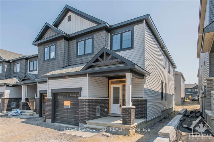 Welcome to this 2023-built brand new upgraded end-unit townhouse with approximately 2,228 sqft. This bright home offers an open-concept main level with a spacious living room featuring hardwood throughout, a gorgeous upgraded kitchen with walk-in pantry, fireplace, breakfast bar, quartz countertops with backsplash, a separate dining area, and many more upgrades. The foyer includes an entryway bench and a large closet.The home features a spacious one-car garage with additional storage space (5' x 4'5) plus two outside parking spaces. The second level includes a large primary suite with an upgraded en-suite bath and walk-in closet, along with three additional spacious bedrooms, a laundry room, and another full bathroom.The lower level offers a finished recreation room, a rough-in for a future bathroom, and plenty of extra space. The house is ideal size for a growing family or first-time buyers.