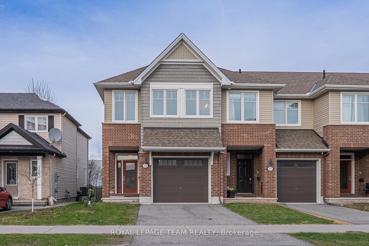 Welcome to this exceptional Tamarack Cambridge end-unit townhome in the sought-after Findlay Creek, one of Ottawas fastest-growing communities. Featuring a PRIVATE driveway and NO rear neighbors, this ENERGY STAR certified home is designed for modern living with a bright, functional layout and premium finishes. It offers 3 spacious bedrooms, 3 bathrooms, and a fully finished basement, making it ideal for families or investors. The exterior showcases a stylish brick and siding façade with an oversized garage. Inside, the main level features rich hardwood flooring and an open-concept design connecting the living, dining, and kitchen areas. The gourmet kitchen boasts a granite island, new stainless steel appliances, under-cabinet lighting, and a walk-in pantryperfect for daily meals or entertaining. The living room includes a Napoleon linear gas fireplace with changeable lighting and matching wall sconces, creating a cozy and sophisticated ambiance. The staircase landingunique to end unitsfeatures four large windows and a built-in niche for decor. Upstairs, the primary bedroom offers a luxury 4-piece ensuite and a spacious walk-in closet, while two additional bedrooms and a second-floor laundry room with a utility sink enhance convenience. The fully finished basement provides versatile space for a home theatre, gym, or playroom. Recent updates include new carpeting, vanity lighting, and faucets. Additional features include an HRV ventilation system and a tankless hot water heater. The private, fully fenced backyard offers a serene retreat with a childrens playhouse and garden beds. Located near parks, schools, shopping, public transit, and the future Leitrim LRT station, this move-in-ready home combines style, comfort, and convenience. Backing onto the plaza, everything you need steps away. Don't miss your chance to own this beautifully maintained property!