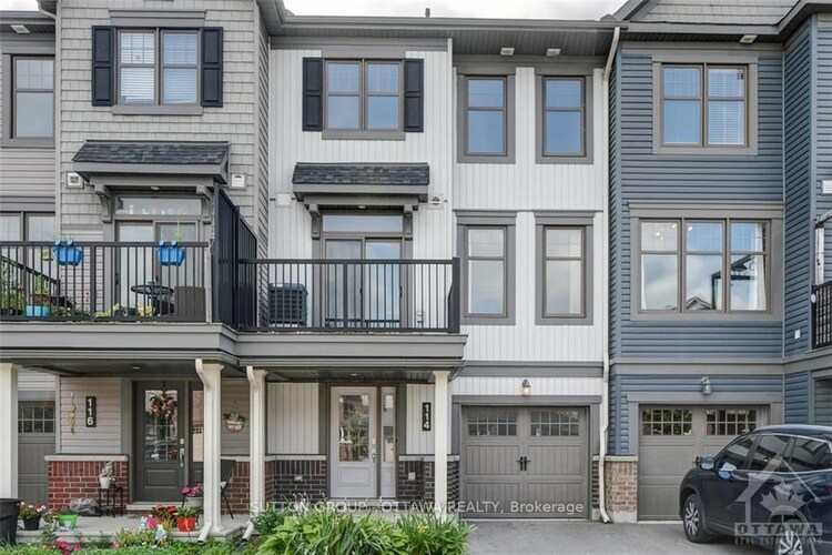 Welcome to a well-maintained freehold 3-storey townhome in the heart of Kanata Lakes, offering a bright, practical layout and exceptional value-perfect for first-time buyers, investors, or downsizers looking for low-maintenance living without sacrificing comfort. The front exterior presents a clean, modern look with an attached garage and private driveway, while the elevated entry adds a sense of privacy. Inside, the main level features a bright foyer with a spacious laundry area, extra storage, and convenient inside access to the garage, making everyday routines easy and organized. The second floor opens up into a sun-filled, open-concept living space with newly updated flooring and large windows that bring in plenty of natural light. The living and dining areas flow seamlessly into a stylish kitchen with a central island, dark cabinetry, and stainless steel appliances, creating a functional and inviting space for both daily living and entertaining. Step out onto the private balcony, where you can enjoy open views and fresh air-perfect for a morning coffee or a relaxed evening. Upstairs, the third level offers two well-proportioned bedrooms with large windows and a soft, neutral palette, including a comfortable primary bedroom with a walk-in closet. A full bathroom completes the level with clean finishes and practical design. The outdoor space continues the home's appeal, with a raised balcony that extends your living area and offers a quiet spot to unwind. Additional highlights include freehold ownership with no condo fees, central air conditioning, and a truly move-in ready condition throughout. Located in one of Kanata's most sought-after communities, you're within walking distance to parks, transit, and everyday amenities, and just minutes from Kanata Centrum, Tanger Outlets, the High Tech Park, and Highway 417-making both daily life and commuting incredibly convenient. A fantastic opportunity to enter the Kanata Lakes market with style, comfort, and value.
