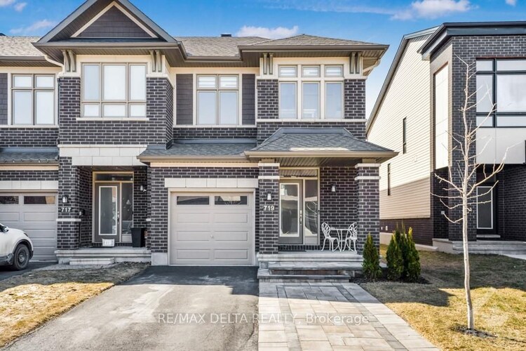 Welcome to Richcraft's largest townhome model, featuring hardwood on both the main and second levels, 3 bedrooms plus den upstairs, and a private driveway with interlock for side by side parking. Step inside from the covered porch into a bright, open concept main floor with high ceilings and large windows that fill the space with natural light. The two-toned kitchen features quartz countertops, black stainless-steel appliances, a gas range, pendant lighting, which flows seamlessly into the dining area and living room where a gas fireplace adds warmth and character. A patio door leads to the fully fenced backyard with widened back steps leading to the interlock patio, designed for easy, low maintenance outdoor living. Upstairs, the spacious primary bedroom includes a walk-in closet and a 4-piece ensuite. Two additional bedrooms, a full bathroom, a versatile den, and second floor laundry completes the level. The finished basement extends your living space with a recreation room and additional storage. Ideally located close to parks, schools, shopping, and transit, this home offers a great balance of space, function, and convenience.