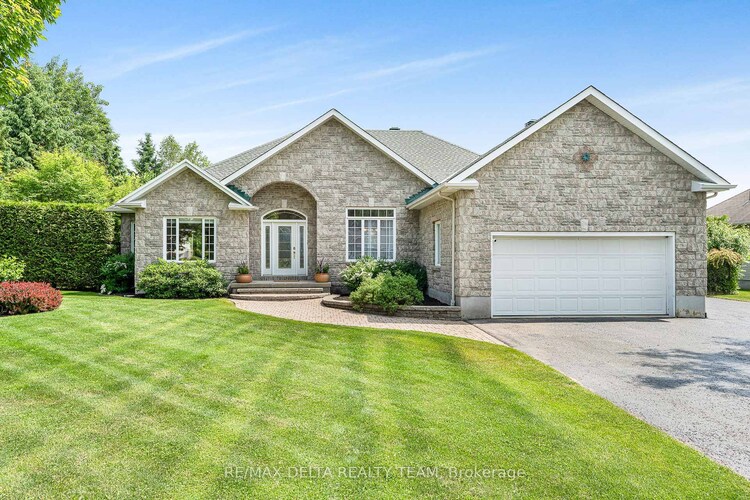 Set on a generous 0.53-acre lot in the heart of Cumberland, this custom bungalow offers a rare combination of privacy, space, & thoughtful design. Surrounded by mature trees & located on a peaceful street, this original-owner home features 3+1 bedrooms, 3 full bathrooms, & over 2,000 sqft above grade of finished living space, ideal for those seeking comfort with a touch of everyday luxury. The main level welcomes you with an open layout that is both inviting & practical. A bright foyer leads to a spacious living room where a cathedral ceiling & gas fireplace create a warm focal point for family time or relaxed evenings. Hardwood & tile flooring flow seamlessly throughout, while the dining room & well-appointed eat-in kitchen provide excellent space for hosting. Granite countertops, stainless steel appliances, radiant floor heated, & a handy breakfast bar make the kitchen as functional as it is stylish. The primary bedroom offers a restful retreat with a walk-in closet & spa-inspired, radiant floor heated, ensuite complete with soaker tub & walk-in shower. Two additional bedrooms & a full 5pc, radiant floor heated, bathroom complete the main level, offering comfort for family or guests. Downstairs, the fully finished basement expands your lifestyle possibilities: radiant heated floors, a 4th bedroom, a 3pc bath, & an oversized recreation area perfect for a games room, home office, workout space, or future multi-generational living. Storage is abundant, including a cold room for seasonal items or preserves. Step outside to a private outdoor environment designed for leisure. The backyard showcases a heated saltwater pool, stone patio, and lush landscaping framed by tall cedars - an ideal place to relax quietly or host memorable summer gatherings. With a double garage & quick access to Highway 174, Orleans amenities, & downtown Ottawa, this remarkable property delivers the convenience of city access with the tranquility of estate living. Some photos virtually staged.