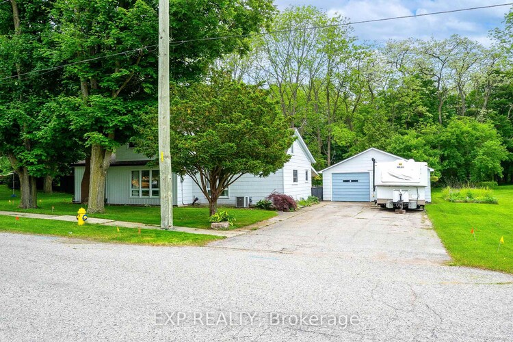 Welcome to this serene and spacious home, ideally tucked away on a quiet cul-de-sac in the charming Village of Otterville. Backing onto a peaceful creek and framed by mature trees, this property offers exceptional privacy and a beautiful natural setting. The fully fenced backyard is perfect for families, pets, and outdoor entertaining, while the detached garage and workshop-paired with a generous 6-car driveway-provide ample space for vehicles, storage, and hobbies. Inside, the main floor features a bright and inviting living room, a generous family room anchored by a cozy natural gas fireplace, convenient main-floor laundry, two bathrooms, and the primary bedroom. Upstairs, two additional bedrooms offer comfortable space for family or guests. The unfinished basement provides a large open area ready for your personal vision. Recent updates include new windows and doors (2025) and a roof (2018), offering peace of mind for years to come. Surrounded by nature and designed for everyday comfort, this is a wonderful place to call home and raise a family.