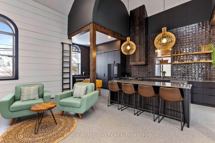 Soaring ceilings, rich architectural detail & a bold, design-forward aesthetic define this extraordinary converted church, thoughtfully transformed into a one-of-a-kind residence. Offering 5 beds & 3.5 baths, the interior blends historic character & striking modern finishes. A dramatic black kitchen anchors the main living space with floor-to-ceiling cabinetry, quartz counters, modern tilework, & a rolling library ladder. Warm white walls contrast beautifully with ebony-stained fluted beams & accents, while shiplap in the Grand Room & Foyer enhances the scale of the space. Fluted detailing carries through the fireplace, kitchen island & hood vent, complemented by custom fluted pocket doors in the primary bedroom, main bath & powder room. Two natural wicker swings hang gracefully from the high ceilings, creating an unforgettable focal point. A wood-clad feature wall & modern electric fireplace add warmth, while reclaimed original church flooring has been repurposed as ceiling accents in the foyer & mudroom. The original hardwood on the main level has been refinished, & select areas feature durable epoxy flooring. Behind the beauty lies a comprehensive rebuild. The property was fully gutted to the studs, including removal of lath, plaster & old insulation, then completely reframed. Blown-in insulation was added through the balloon framing, the stone foundation was spray-foamed, & a fireproof membrane was installed between floors. All plumbing, electrical & HVAC systems have been replaced, including two separate furnaces for upper & lower levels plus air conditioning on the upper floor. The brick & stone exterior has been carefully restored, all windows & doors replaced, & the home has been rezoned to R1 and has full kitchen hookups added to the street-level floor. An exceptional opportunity to own a meticulously restored architectural landmark, reimagined for modern living.