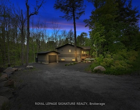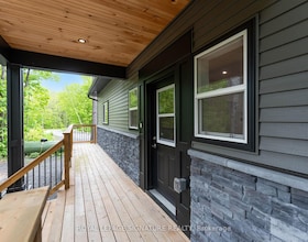 Nestled on a rare crescent-shaped waterfront lot with coveted western exposure and long-lake views, this 4-season, 5-bedroom, 3-bathroom luxury cottag