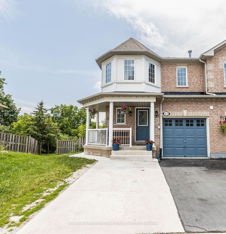 Wow!! Absolutely Stunning!! Beautiful, Spacious & Well Kept Corner Townhouse Like a Semi with Large Fenced Backyard Backing onto Ravine. Beautiful & Cozy Porch in the front, enter into a welcoming foyer, Oak stairs, Large Living/Dining Room with Hardwood floors & W/O to Large Balcony overlooking lush green Ravine, Family size Kitchen with Breakfast Bar, Three good size Bedrooms including Large Prim Bedroom with 5PC Ensuite, W/I Closet & another 4PC Washroom at 2nd level. Professionally Finished W/O Basement with one bedroom, kitchen, Living room & 3PC Washroom. Large Corner Lot, Backing Onto A Ravine With Fully Fenced Backyard. One Car Garage W/ Laundry & an access door into the house from garage. 2 Car Parking in the private driveway. Walk to schools, shopping & all amenities & minutes to Major Highways 427/407/ Hwy50 And Public Transit. Great For First Time Buyers, Investors And Potential For Live & Work Professionals. Lots of upgrades, New paints & Ready to Move in!!