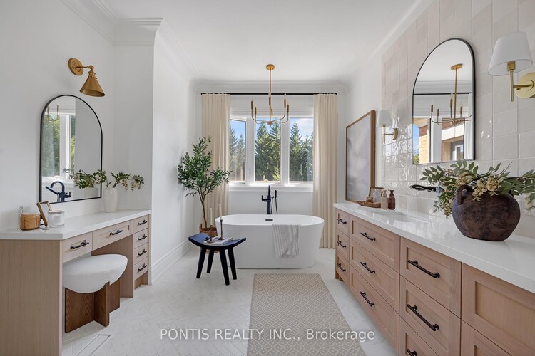 **COME SEE FOR YOURSELF** 55 Burlwood Dr delivers a truly luxury model home aesthetic throughout! Grand and Impressive from the moment you arrive. It's the best option for stylish and modern multi-generation or large family living. Located in the prestigious Estates at The Pavillion in Castlemore, Brampton - a neighborhood of impressive homes. This gorgeous home sits elegantly on a 85 ft wide lot and backs onto tranquil rural landscape with lush treed views. Boasting 5,800+ sq ft of exquisitely crafted spaces and a massive 2,800 sq ft basement, a blank canvas for your imagination. Architectural, landscape and design features define this luxury home giving it grandness inside and out. Stone facades, large arched windows, attractive front porch, front and rear covered patios, grand foyer with spiral staircase, soaring 9 & 10 ft coffered ceilings, crown moldings, potlights, surround sound, luxury flooring. Two separate double car garage discreetly tucked in at opposite end, flanking the wide stone paved driveway. The MAIN FLOOR has it all. Impressive entry, hallway and staircase. Formal living room with gas fireplace. Large formal dining room. Stunning eat-in Chefs kitchen with all the bells and whistles: walk-out to covered porch, walk-in pantry, nearby spice kitchen, servery, huge island, high-end built-in appliances, millwork, lighting, faucets. Expansive family room with gas fireplace. Large office / library. The SECOND FLOOR offers two separate wings that can be reached from the two separate staircases. Two luxury primary bedroom suites, each with impressive soaker tub ensuites, huge walk-in closets. Covered porch and an impressive retreat. Three additional bright and airy bedrooms with their own ensuite. **BOOK YOUR TOUR TODAY** This extraordinary residence seamlessly blends function, elegance, comfort, and sophistication. Designed for how you live - separate yet together. Untouched lower level ready for your imagination! Ready for you to enjoy.