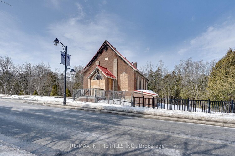 Commercially zoned Institutional, this property sits on a main street in Alton, offering excellent visibility and exposure. Backing onto the scenic Credit River, the setting is both peaceful and picturesque. The property is being sold primarily as land value, as the former church was extensively damaged by fire.The hamlet core has recently undergone significant revitalization with improved sidewalks, street lighting, landscaping, and access to nearby trails. Close to popular destinations including Ray's Bistro and the Alton Mill Arts Centre, known for its galleries, festivals, and classes.Strong area growth continues with nearby investment, including the expansion of Millcroft Inn and TPC Toronto at Osprey Valley-now home to Golf Canada's headquarters and host site of the Canadian Open.Permitted Institutional uses include a sports arena, wellness centre, place of worship, school, daycare, and more. Buyers to complete their own due diligence with the Town of Caledon regarding permitted uses.