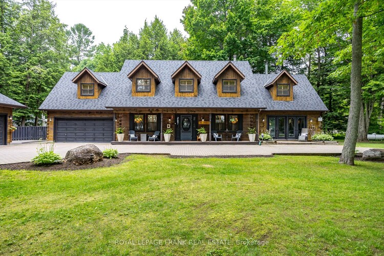 Nestled in Buckhorn and just steps away from the Buckhorn Yacht Harbour, this exquisite Confederation log home sits on a serene one-acre wooded lot. The custom-designed beauty features inviting front and back porches, perfect for relaxing and soaking in the natural surroundings. Inside, the home offers three spacious bedrooms and three bathrooms, including a luxurious primary suite complete with a wood-burning fireplace, two closets, and a five-piece ensuite. The renovated kitchen boasts white quartz countertops, stainless steel appliances, and a new faucet, and it conveniently opens to a separate laundry room and offers direct access to the double car garage. The home's open and airy design includes a grand living and dining room and a main floor family room with cathedral ceilings, ideal for cozy evenings by the fire. Adjacent to the family room, you'll find a versatile space that could serve as an office or a gym, with a walkout leading to the stunning backyard. The property is beautifully landscaped, reflecting meticulous care and pride of ownership. Additionally, there is a fully insulated triple car detached garage, offering ample space for all your toys or additional entertaining area. This exceptional home is a must-see!