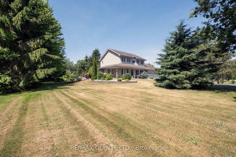 Welcome to this wonderful family home set on a quiet road in beautiful Prince Edward County, offering just under 5 acres of manicured property and two impressive outbuildings.The main floor of this home includes a formal living room and a cozy den, both finished with hardwood flooring. The beautiful kitchen offers an abundance of quality cabinetry, granite countertops, tile backsplash, and a bright breakfast nook that is perfect for casual meals.The dining area off the kitchen flows into a bright sunken family room featuring a propane fireplace, stunning cathedral ceilings and windows making this space feel open and bright, creating a warm and inviting gathering space. The main level is completed by a convenient laundry area and a 4-piece bathroom.The second level offers a spacious primary suite with a walk-in closet and private 4-piece ensuite. Two additional bedrooms and another 4-piece bathroom provide plenty of space for family or guests.The full, unspoiled basement offers excellent storage and the potential to create a large recreation room or additional living space.Outside, the property showcases beautifully maintained grounds and gardens, mature trees, and a seasonal creek along the south side of the property. Enjoy the covered front porch, stamped concrete front walkway, rear patio, and an additional concrete entertaining area-perfect for relaxing or hosting gatherings.A standout feature of this property is the two detached outbuildings. The 28' x 40' insulated garage includes its own geothermal heating and cooling system and can accommodate up to four vehicles. There is also a large 30' x 60' Quonset hut, providing exceptional storage space for vehicles, equipment, or recreational toys.The property offers abundant parking and is surrounded by nature, with frequent sightings of birds, wild turkey, and deer.A truly unique property offering space, privacy, and incredible value.