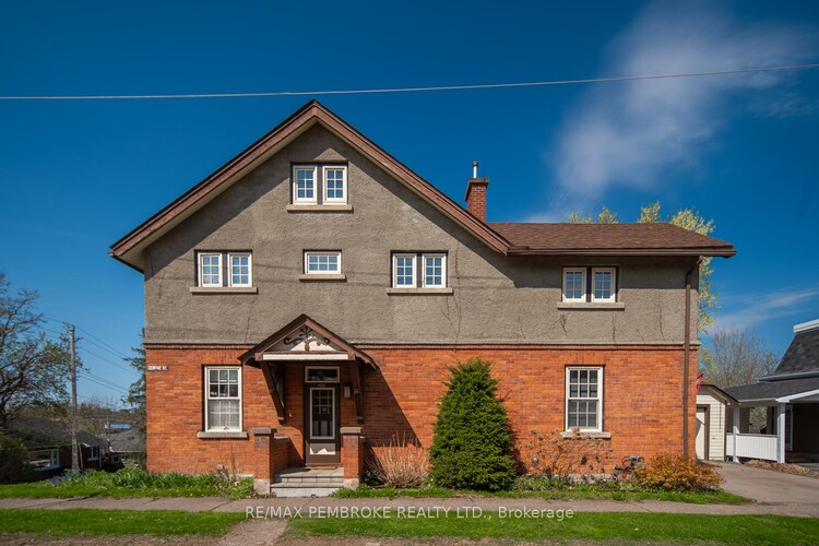 Nestled on a tree-lined corner in Pembroke's East End, this turn-of-the-century Edwardian home is where timeless character meets everyday comfort. From the moment you arrive, ivy curling along the garden walls and stone steps leading down rolling lawns set the tone for a property unlike any other. Inside, the craftsmanship of a bygone era is beautifully preserved. Original hardwood floors, tall ceilings, and intricate vent covers are paired with warm, craftsman-style casings that frame each room with elegance. The heart of the home is a traditional dining space that flows into a light-filled living area, perfect for gathering with family or hosting friends. Just beyond, a thoughtful addition with its own entrance, fireplace, and spa-like ensuite offers privacy and flexibility, whether as a wheelchair accessible in-law suite or a serene retreat. Upstairs, three inviting bedrooms and a four-piece bath create a restful family haven, while a finished attic provides space for creativity, play, or simply a quiet hideaway. Even the lower level has been cared for, with a dry basement offering laundry, storage, and cold room. Outdoors, the magic continues. A multi-level deck winds gracefully around the house, overlooking a backyard that feels like a private park. Blooming gardens, a waterfall pond, and mature hedges create a storybook setting where children can explore and adults can relax. A detached garage with heated workshop completes the picture, offering space for both work and play. This is more than a house, its a home that inspires, welcomes, and charms at every turn. 24 Hours Irrevocable on all offers please.