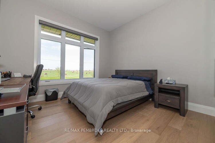 Substantial custom waterfront home offering exceptional scale, privacy, and quality. Approximately 2,900 sq ft per level with impressive volume throughout, complemented by a 1,300 sq ft triple-bay garage. Recently installed Glow Getters exterior lighting enhances curb appeal and creates a striking nighttime presence. Set on west-facing direct waterfront with tranquil water views at the rear and open fields at the front, this property is located on a private road shared with six residences, offering a mature and private setting. The thoughtfully designed kitchen offers a highly functional dual-sink layout and a complete suite of premium integrated appliances, including dual refrigeration and a Bosch built-in coffee station. Interior finishes include oversized porcelain tile, engineered hardwood throughout, and triple-pane windows, selected for quality, comfort, and timeless design. A Generac generator provides peace of mind. Ideally positioned approximately one hour from Ottawa's West End, with convenient access via Hwy 17, 25 minutes to Renfrew Hospital, and 20 minutes to Pembroke Regional Hospital and major shopping. Close to Whitewater Brewing Co., Oaks of Cobden Golf Club, beaches, Algonquin Trail access, and quality local schools. A rare offering combining scale, privacy, and lifestyle.