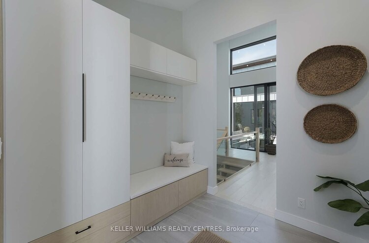 Architectural. Refined. Turn-Key. Exceptional custom-built bungalow (2021) offering over 4,300 sq ft of finished living space, complete with a private courtyard retreat, insulated Quonset hut, and fully insulated summer house. Constructed with R35 ICF for superior efficiency and durability, and finished with a Standing Seam aluminum roof, aluminum siding, and aluminum windows. Striking angular rooflines, rich wood accents, and professionally landscaped grounds create remarkable curb appeal. Open-concept interior featuring 17-ft cathedral ceilings, engineered hardwood flooring, and a chef-inspired kitchen imported from Greece with porcelain countertops, waterfall island, premium KitchenAid and Monogram appliances, and a full butler's pantry. All main-level bedrooms offer private ensuites, including a spa-like primary with freestanding tub and glass shower. Fully finished lower level with 9-ft ceilings, rec room with fireplace, wet bar, office, bonus room, additional bedroom, laundry, and 4-piece bath. Gas hot water on demand. 200-amp service (home), 100-amp (garage), 60-amp (Quonset hut). Outdoor courtyard includes gas line; raised garden beds and greenhouse complete the property. A rare, design-forward offering combining craftsmanship, efficiency, and lifestyle.