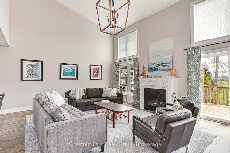 Welcome to your perfect Collingwood retreat! This beautifully designed 5-bedroom end-unit townhouse offers the ideal blend of space, natural light, and unbeatable location nestled right along the fairways of the Cranberry Golf Course and just minutes from the area's premier beaches, scenic trails, and ski clubs/resorts. Step inside to an airy open-concept layout, where floor-to-ceiling windows flood the home with sunlight and frame picturesque views of the lush green space beyond. The main floor features a generous primary suite with a private ensuite, a bright and versatile den/home office, and a functional kitchen outfitted with stainless steel appliances. The living and dining areas flow effortlessly together, creating a perfect space for both relaxed family living and stylish entertaining. Walk out to your private deck and enjoy peaceful mornings overlooking the golf course - now complete with a brand new hot tub, perfect for relaxing after a day on the slopes or trails. Upstairs, you'll find three spacious bedrooms with ample closet space and a 4-piece bath. The fully finished lower level offers even more room to relax or host guests, complete with a large recreation room, additional bedroom, full bathroom, and a bonus yoga/gym room. This home truly shines in every season. Enjoy quick access to the Georgian Trail, nearby private and public ski and golf clubs, beaches and a community recreation centre with outdoor pool. The large 2-car garage provides ample storage and parking, while visitor parking is just steps away. Whether you're seeking a luxurious weekend getaway or a full-time residence that embraces Collingwood's year-round lifestyle, this home delivers it all.
