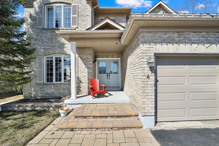Discover this exceptionally well-maintained, all-brick family home at 4 Gold Park Gate in Angus. Boasting over 2800 sq. ft. of fully finished living space on great lot. This spacious and bright home features a double-door entry, 9-ft ceilings, and a formal living and dining room with hardwood floors and pot lighting. The beautifully renovated eat-in kitchen (2022) showcases quartz counters, a stylish backsplash, new appliances, pot lighting, a breakfast bar, and a walkout to a stone patio and fenced yard with a garden shed. The cozy family room offers a gas fireplace and hardwood flooring. A main floor laundry with garage access and a powder room add convenience. Upstairs, the refinished primary suite includes a walk-in closet, an ensuite with a new vanity and shower, and a relaxing corner jet tub. Three additional generously sized bedrooms complete the second floor. The finished basement features a large rec room, a 2-pc bath, and ample storage. Upgrades include new garage doors (2021), central air (2024), and a water softener.