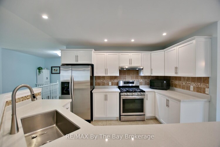 Set on a beautifully mature lot, this property offers a private, fully fenced backyard surrounded by trees, creating the kind of quiet, tucked-away outdoor space that's perfect for kids, pets, and summer evenings on the deck. As you walk into the home, you're welcomed by a spacious foyer with convenient inside entry from the garage, leading into a bright, open-concept main floor. Large windows fill the space with natural light, highlighting the updated flooring and creating an easy flow between the living, dining, and kitchen areas. The kitchen offers great counter space perfect for cooking, with access to the 45 ft back deck spanning the back of the house, perfect for entertaining and barbequing. An additional room on the main floor with French doors offers flexibility as a dining room, office, or playroom.The main level offers 3 bedrooms, including a generous primary suite with a walk-in closet, private ensuite, and its own walkout to the deck. Updated finishes throughout, including new carpet in the bedrooms and stairs, add to the move-in-ready feel. With a total of 3 bathrooms, the layout is designed to comfortably accommodate family living. Downstairs, the fully finished basement offers incredible additional space, including two more bedrooms, a separate office, and a large recreation area with room for a pool table. A wet bar and gas fireplace make this the perfect setup for entertaining or hosting guests, while still offering plenty of functional living space for a growing family. Additional highlights include gas fireplaces on both levels, new front doors, interlock driveway and walkway, central air, central vacuum, owned hot water tank, water softener. Walk to school, walking trails, shopping and beach. 7 min drive to Collingwood.