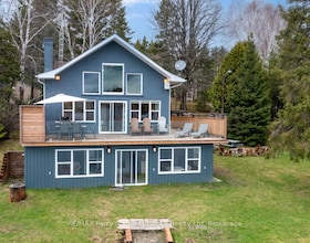 Stunning 3 bedroom, 3.5 bathroom, fully furnished cottage on Bear Lake in Noelville, the French River area. A captivating long view and southern expos