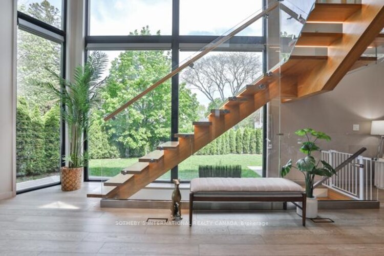 Welcome to this one of a kind Modern Masterpiece!!! A true architectural gem, this stunning custom built 4+1 bedroom home is a showcase of modern elegance, precision craftsmanship, and unparalleled attention to detail. Designed to impress, it combines striking contemporary aesthetics with the finest materials and top of the line finishes. From the moment you arrive, the beautifully landscaped grounds, sophisticated exterior lighting, and elegant interlock stonework ... Step inside and be captivated by a grand foyer featuring soaring ceilings floating stairs and floor to ceiling windows. Discover a fully integrated smart home, featuring automated blinds, a Ring doorbell, security cameras, smart appliances, and built-in Sonos speakers that fill the home. The chef-inspired kitchen is a standout, complete with premium Bosch appliances, a gas cooktop, built-in oven, microwave, under sink and whole home Kinetico water filtration systems, a built-in coffee bar perfect for both daily life and entertaining. The Stunning home offers 4 spacious bedrooms, each with its own ensuites, built in closets, floor to ceiling windows that flood the rooms with natural light. Luxurious touches are found throughout, including heated floors in the kitchen, bathrooms, and basement. Wellness is a priority with a dedicated gym, sauna, and steam room. Designed for convenience, offering two full laundry rooms and abundant storage. Even the garage goes above and beyond fully finished with heating, tiling, custom lighting, a rough-in for an EV charger, and built-in tire storage. Outdoor living is equally impressive, featuring two spacious patios, a built-in gas grill, and professional landscaping. This one of a kind property is more than just a home it's a lifestyle.