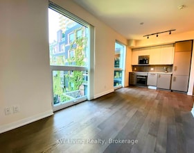 Priced to sell! Subway at your doorstep! This South Facing One Bedroom features laminate flooring throughout. Freshly Painted. 9ft Ceiling with update