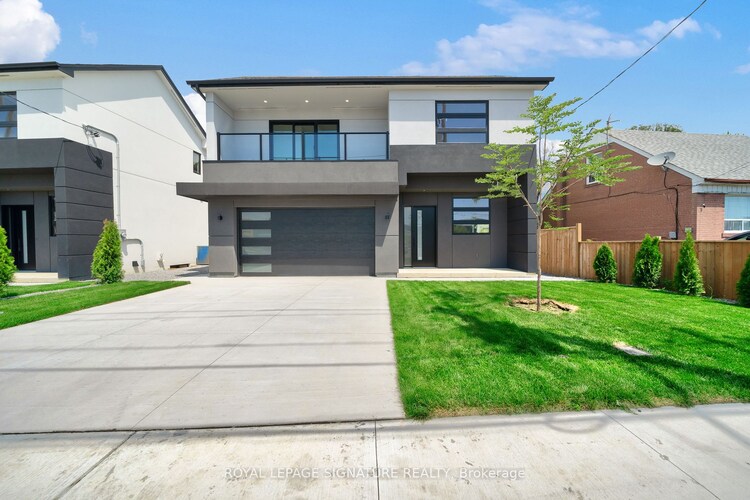 Discover luxury in this European-inspired, modern custom-built Toronto home. With over 3000 sgft, this property features spacious principal rooms, spa-like washrooms, and expansive skylights that flood the space with natural light. The open concept main floor with a modern kitchen, dining area and living room fireplace feature wall, has 2 oversized sliding doors giving access to a beautifully landscaped backyard. Escape to your oasis with freshly laid sod and trees and a 12' x 30' pressure-treated covered deck that is perfect for relaxation and entertaining. Located in a prime area close to highways, schools, amenities, and shopping, this home offers an exceptional blend of space and convenience in Toronto. Check it out for yourself why this home is a must-see!