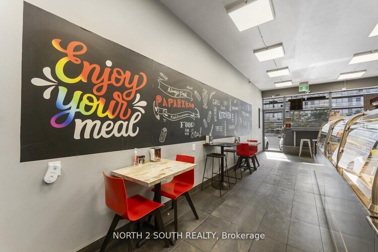 A prime turnkey restaurant opportunity in a fast-growing corridor. This beautifully set-up restaurant was fully renovated approximately four years ago and has been maintained in excellent condition ever since. The space offers a modern, efficient layout featuring a rare 16-foot commercial hood, shawarma grills, and many more well-kept kitchen components, all in immaculate clean condition, along with a large walk-in fridge and generous prep and storage areas. This provides a turnkey-ready setup that allows a new owner to begin operating immediately. Surround yourself with an established, vibrant food strip featuring Burrito Boyz, K&B Sushi, Scotty Bon's Caribbean Grill, and North of Brooklyn Pizzeria, in a rapidly growing corridor supported by strong surrounding businesses, new high-rise residential developments, and a major Longo's opening directly across the street. This combination drives consistent foot traffic and offers exceptional exposure for fast-food and quick-service restaurant concepts, as well as takeout and delivery operations through Uber Eats and such. The new owners have the flexibility to introduce an entirely new menu and brand, or to continue the existing concept with complete A-to-Z training for a seamless takeover. The infrastructure and equipment support a wide range of culinary operations, making this an adaptable and practical choice for both established operators and those looking to expand.