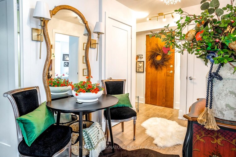 A SHOWSTOPPER CORNER UNIT! You will love this beautiful, fully renovated 2 bedroom-split layout with lots of Natural Light with Floor to Ceiling Windows. Nearly 900 sq ft, the primary bedroom fits a king-size bed and includes a private ensuite 4 pc Bathroom. Other upgrades include: smooth ceilings, pot lights throughout, a google smart home, chef's kitchen with granite countertops & a rare large kitchen window that floods the space with natural light. This Suite is perfect for entertaining! Lots of Storage. From the private balcony you view Lake Ontario. Steps to Islington Subway Station! Close to highways, Go Station, Shops, Restaurants & Bloor St. All Utilities are included in the Maintenance Fee (heat, hydro,water). This is the perfect condo to call home! Perfect for 1st time home-buyers or Downsizer. 24 hr Concierge in a Well-Maintained Building! Don't miss this Stager's Paradise!