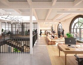 Spacious and modern with an open floor plan, this office area is adaptable to your business needs, whether you're looking for collaborative workspaces