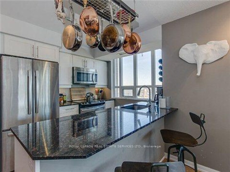 The coveted 02 unit at 125 WB, just in time for spring! Luxury meets functionality in a highly sought-after building, this stunning unit boasts panoramic million $ views of the city's iconic skyline + CN Tower (unique only to these units), offering a front-row seat to the vibrant energy of Liberty Village. Bright, open-concept living space with floor-to-ceiling windows. Sleek, modern kitchen features stainless steel appliances, a FULL-SIZED fridge, granite countertops, and a spacious island perfect for entertaining. The expansive living and dining area seamlessly flow together, offering ample space for relaxation and hosting guests, all while taking in the stunning views of the city. Private balcony provides the perfect outdoor retreat to unwind after a busy day. The primary bedroom is complete with custom closet organizers and a luxurious ensuite bathroom. The second bedroom is generously sized, with ample closet space and a second full bathroom conveniently located. The den is ideal for a home office, library, nursery or even a cozy reading nook. With direct access to premium amenities such as a fitness center, party & media room and 24-hour concierge service to provide the utmost convenience. King St right outside your door. Custom closet organizers in each closet. This condo is just steps away from trendy shops, restaurants, cafes, and public transit, offering the perfect balance of city living and comfort.
