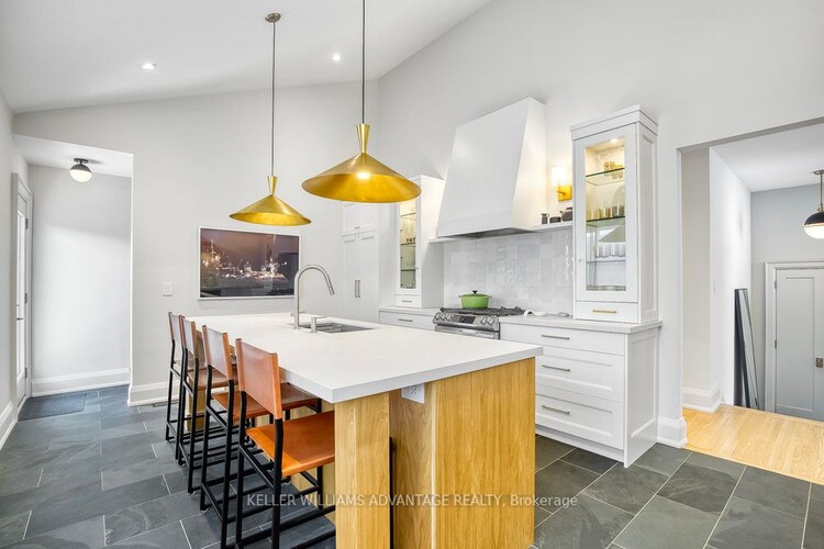 Magnificent, meticulously-renovated 3 bedroom, 2 bathroom home available for sale in quiet, family-friendly, enviable Etobicoke location. Pride of ownership shines throughout this stunning home with so many incredible features including a sunny living and dining area with a soaring 14 foot vaulted ceiling and a brand new gas fireplace. Bright, gourmet custom Marana kitchen is like a dream: exquisite cabinetry, gas stove, stainless steel appliances, 9.5 foot Caesarstone island and coffee bar, and walk-out to yard. His & hers closets in two bedrooms. Refinished, original red oak flooring in main living areas. Heated floors and acoustic insulation in bathrooms. Lutron Casetta smart lighting. Sunny lower-level rec-room/office space with above-grade windows, sound insulation and Cat 6 wiring. Two sinks, pantry, and abundant storage space in basement, along with renovated 3 piece bathroom. Big backyard with huge potential for a pool! Whole home is an absolute show-stopper that must be seen!