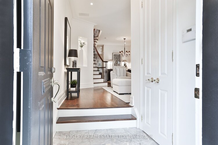 Sophisticated city living in the heart of Deer Park. Well-appointed 3 bedroom, 4 bath townhome has been meticulously maintained and thoughtfully updated with classic finishes. Featuring timeless details such as 9 ft ceilings throughout, hardwood floors, crown moulding, and custom millwork. Open concept living and dining with gas fireplace, custom kitchen with granite counters, ample storage, and oversized island with seating for 4 is the perfect space for entertaining. Walk-out from the kitchen to private courtyard with raised garden, views of greenspace, and gas bbq hook-up. The entirety of the second floor is the principal suite. Expansive bedroom with fireplace and sitting area, 4 piece en-suite with Jacuzzi tub, glass enclosed shower, and granite topped vanity. Walk-in closet and wall to wall closets are outfitted with custom organizers. Spacious 2nd and 3rd bedrooms occupy the skylit upper level, main 4 piece bath w/ steam shower and soaker tub. Lower level has high ceiling, rec