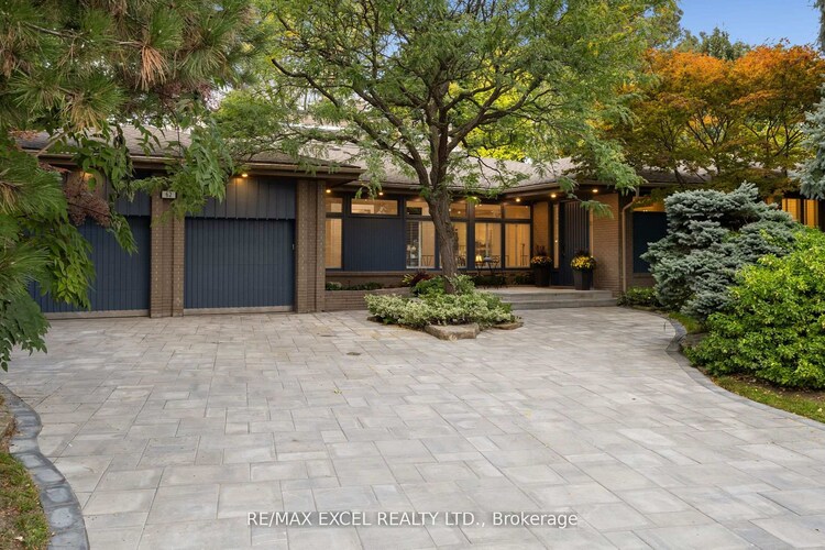 Architecturally Distinct Residence Situated On An Exceptional 128.75 x 159.17 Ft Treed Lot In A Prestigious And Highly Sought-After Enclave. This Remarkable Split-Level Home Presents A Rare Opportunity For Buyers Seeking Space, Privacy, And True Architectural Character.Dramatic Ceiling Heights, Expansive Skylights, And Walls Of Windows Fill The Home With Natural Light, Creating A Bright And Airy Atmosphere Throughout. Elegant White Brick Accents, Rich Hardwood Floors, And Custom Railings Define The Interior's Timeless Design. Generous Principal Rooms Offer Outstanding Flow For Both Everyday Living And Entertaining, Enhanced By Multiple Fireplaces And Inviting Gathering Spaces.The Bedroom Level Provides Comfortable And Private Accommodations, Including A Well-Appointed Primary Retreat With Walk-In Closet. Updated Bathrooms Add A Polished Contemporary Touch While Maintaining The Home's Refined Aesthetic.The Finished Lower Level Adds Exceptional Versatility Featuring A Large Recreation Area, Custom Wet Bar Ideal For Entertaining, Dedicated Fitness / Yoga Studio With Mirrored Walls, And A Bright Nanny Room With Ample Storage.Private Driveway And Expansive Backyard Setting Complete This Exceptional Property. Ideally Located Near Top-Rated Schools, Parks, And Outstanding Amenities.A Rare Offering Combining Architectural Identity, Exceptional Lot Size, And Enduring Appeal.