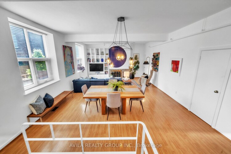 ONE-OF-A-KIND LOFT FOR SALE IN TORONTO'S TRINITY BELLWOODS. Welcome to The Oxford on Markham, an exceptional New York-style loft that blends authentic character with modern design. Once home to the historic Oxford Picture Frame Factory, this boutique building captures industrial charm with 10-ft ceilings, oversized gallery windows, and nearly 1,500 sq. ft. of bright, open living space. Featuring a reverse layout, both bedrooms are located on the lower level for ultimate privacy and quiet. The king-sized primary suite includes wall-to-wall closets and a tranquil full bath, while the second bedroom or office is ideal for guests or remote work. Upstairs, enjoy a flexible open-concept living area with soaring ceilings, abundant natural light, and space for both dining and lounging. The modern kitchen and bathrooms have been thoughtfully updated with sleek finishes, and a fireplace adds warmth and character to the upper level. Step outside to your private balcony or deck, a rare urban oasis perfect for morning coffee or unwinding after a long day. Parking included. Set in the heart of Trinity Bellwoods, one of Toronto's most vibrant and sought-after neighbourhoods, you're steps from Queen Street West, Bathurst, trendy cafés, art galleries, boutique shops, and leafy parks. Whether you're an entrepreneur working from home, a creative professional seeking inspiration, or a city dweller who loves to entertain, this unique loft offers unmatched flexibility and lifestyle appeal. Live inspired. Live here. Book your private showing calling your must trusted Realtor. More than a home, this one-of-a-kind loft captures the soul of downtown Toronto, where everything you love is just moments away.