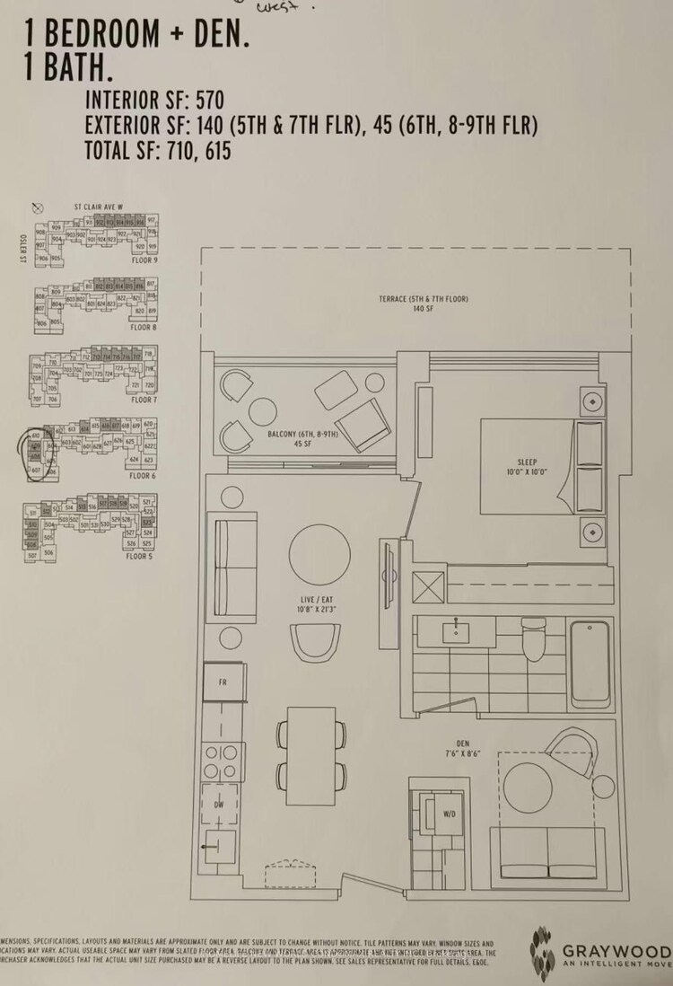 2 yr new 1Bed + Den Condo facing west with Parking and Locker Included in the vibrant and trendy neighborhood of St. Clair West. Nestled between Corso Italia, Stockyards Village & The Junction neighborhoods. Convenient Access to Hwys 401, 400, Pearson Airport and 512 TTC St. Clair Streetcar at doorstep. Enjoy local restaurants and shops of the Junction Neighbourhood just 5 mins. away and walking distance to the Stockyards Village Shopping Centre. Nations and Metro Grocery Stores, Walmart, Home Depot, Best Buy and More. Amenities: Gym, rooftop party room with outdoor terrace and BBQ areas, kid's play room, dog washing station, games room