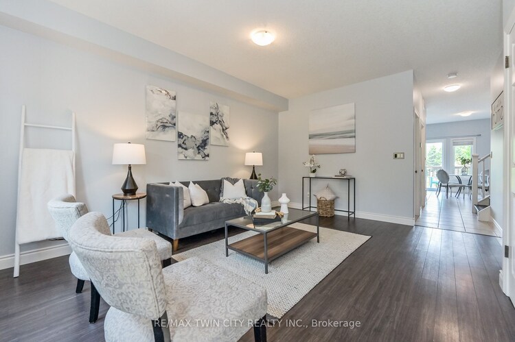 PICTURE PERFECT LIVING at 38 Howe Drive #6A - A stunning end unit townhome is a true gem with 1500+ sq ft, 3 beds, 2 baths, 9' ceilings, 2 parking spaces in a desirable Kitchener location. Beautiful carpet-free home with brand new high-end stainless steel appliances and low condo fees. Spacious living room with laminate flooring, newer paint, and elegant trim work. Terrific Powder room and laundry with brand new washer/dryer. The heart of the home is the marvellous kitchen with ample cabinetry, backsplash, double sink, range hood microwave, and brand new top of the line stainless steel appliances. Kitchen is open to dining area, which is perfect for entertaining family and friends. Lovely deck for coffee, barbeques, or sun-bathing. Large master bedroom with a walk-in closet, huge 4-piece washroom, 2 more great sized bedrooms. Conveniently located near amenities, schools, parks, shopping, transit, restaurants, and expressway. Don't miss out on this one and book your private tour today!
