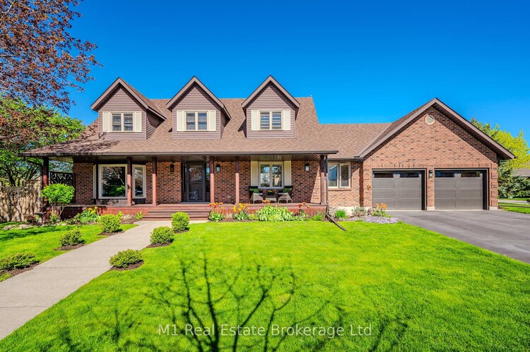 Welcome to this meticulously maintained two-storey home on a fully fenced corner lot in beautiful Elora. Offering approximately 3,700 sq ft of finished living space across three levels, this charming brick home with Cape Cod dormers and a covered front porch is ideal for families and professionals seeking space and convenience. A bright foyer opens to a thoughtfully designed main floor featuring a family room with a gas fireplace and large windows, a formal dining room with direct kitchen access, and a well-appointed kitchen with stainless steel appliances, granite countertops, and a generous peninsula with breakfast bar. A bay-window breakfast nook overlooks the backyard, while a front living room offers views of the front yard and front porch. The functional mudroom leading to the double car garage includes laundry and a three-piece bath.Upstairs there are three bedrooms, including a spacious primary suite with a 4-piece ensuite. Two additional bedrooms share a beautifully finished 4-piece bath, plus a charming reading nook at the top of the stairs.The partially finished lower level adds a family room, gym, and fourth bedroom. Enjoy the fully fenced backyard with direct access from the kitchen-perfect for entertaining. With parking for six (4 driveway, 2 garage) and a prime location beside Drimmie Park, in a sought-after school district and minutes to downtown Elora, this home offers outstanding lifestyle appeal with easy commuter access.