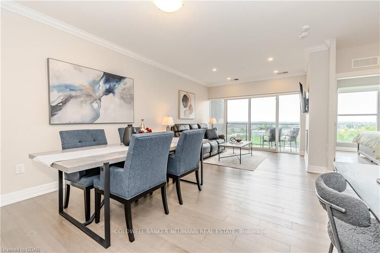 Discover this bright, spacious, and affordable one-bedroom condo, offering effortless living in a well-maintained building. Featuring warm hardwood floors throughout, the unit is large enough to accommodate an office space, king-sized bed, dining area, bar stools, and a cozy living room with a fireplace. Step out onto your private balcony with scenic views of trees and the city skyline. An underground parking spot is included, and an opportunity to rent a second spot is there as well. Move-in ready, this unit has been a fantastic home for its current owner. The amenities within the building offer a gym, billiards room, golf simulator and social events. This clean and well run building is steps to so many amazing stores such as Longos, Zehrs, LCBO, Shoppers Drug Mart, Gas station, and minutes to the 401, this place is a perfect opportunity for first-time buyers to step into the housing market.