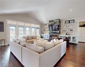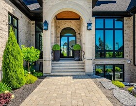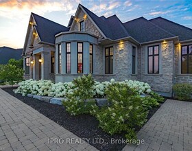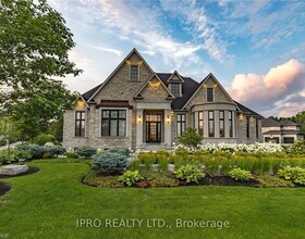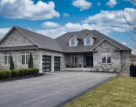 Custom built all natural stone bungalow on a half acre in the prestigious gated community of Heritage Lake Estates. Located steps from a private lake,