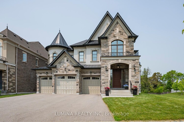 Experience luxury living at 99 Glensteeple Trail, a custom-designed 5,300 sq ft stone villa set on the Largest lot in the subdivision (120 x182)* Overlooking Beacon Hall Golf & Country Club* This home features 4 ensuite bdrms, a gourmet kitchen, grand curved staircase, 5 Bay windows, and an extended rear design offering exceptional natural light & ravine views* The W/O basement has over 2,500 sqft. of customizable space W/ bay windows - ideal for a home theatre, gym, recreation area, or multi-suite layout* A dedicated Elevator shaft location ensures long-term accessibility for future-ready convenience* A 4-car garage plus driveway provides parking for up to 10 vehicles* this rare estate is the Only custom-built home in the subdivision with a grand curved staircase anchoring the main level blends craftsmanship, privacy & convenience in one of Aurora's most prestigious communities*4 spacious bdrms, each featuring its own ensuite & W/I closet*The primary suite includes a fireplace, bay windows w/ ravine views, a spa-inspired ensuite w/separate tub & shower and dual w/I closets*The gourmet Chef's kitchen Induction cooktop, B/I Miele coffee machine, oversized island, breakfast bar, and a bay-window dining area. Seamless open-concept living spaces with elegant crown mouldings.