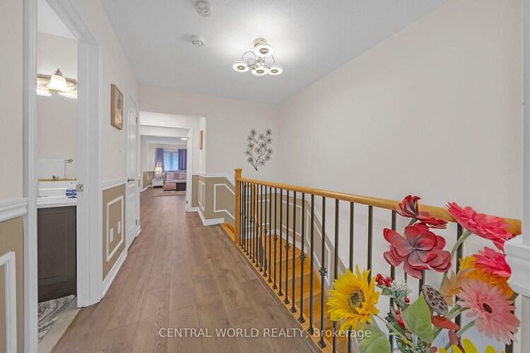 Property Overview Location: Situated in the heart of the sought-after, family-friendly Sharon Village. Home Type: Exquisite executive townhome with North & South views and Sunlight Captures. Stats: 3 Bedrooms, 3 Bathrooms. Condition: Meticulously cared for and ready to live in. Interior Highlights Main Floor: Bright, open-concept layout featuring gleaming hardwood floors and chic modern lighting. Chef's Kitchen: Equipped with stainless steel appliances, granite countertops, and a breakfast bar perfect for entertaining. Primary Suite: A true sanctuary featuring: Double Door His and Hers closets. Spa-like 5-piece ensuite with a soaker tub and glass-enclosed shower. Laundry: Convenient second-floor laundry room with a utility sink. Exterior & Parking Outdoor Living: Spacious back deck overlooking a charming private yard. with no other building at the back. Good Sunlight Capture. Parking: Ample space with 3-car parking for family and guests. Location & Lifestyle Amenities: Moments away from top-rated schools, parks, scenic trails, and Vince's Market. Commuting: Effortless access to Highway 404 and the Newmarket GO Station.