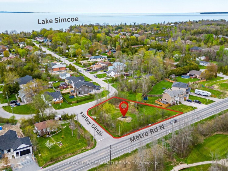 Rare, Build Ready Oversized Lot In Prestigious Willow Beach. This Generous Lot (~15,000 Sq Ft) Comes With LSRCA Approved Permit And Complete Engineering Package For Single Family Dwelling Construction. Fully Serviced: Municipal Water, Sewer, Natural Gas At Lot Line. Most Lots Require Months Just For Conservation Authority Approval. This One Is Ready Now. No Waiting, No Permitting Delays, No Uncertainty. Start Foundation Work This Season And Move In 2027. This Is Perfect Opportunity For Custom Builders Seeking Low Risk Turnkey Development Or Families Ready To Build Their Lake Simcoe Dream Home With Extra Privacy And Natural Surroundings. Features Unique Natural Watercourse Creating Park Like Setting With Tranquil Water Views. Location Features: Private Willow Beach Community Beach Access (Members Only, Year Round), 5 Minute Walk To Lake Simcoe, Adjacent To Golf Course, 25 Minutes To Highway 404, Under 50 Minutes To Toronto. Extra Space For Boat/RV Storage, Gardens, Outdoor Living.