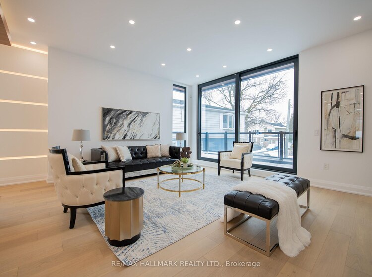 Don't miss this stunning brand-new custom-built home, ideally located just steps from the peaceful shores of Lake Wilcox. From the moment you enter, you're welcomed by a modern, elegant design and a thoughtfully planned open-concept layout. The living and dining areas feature dramatic floor-to-ceiling windows, filling the home with natural light and warmth. Enjoy a private balcony with a BBQ gas line overlooking the landscaped front yard and 6-carinterlock driveway. The home features 10-ft ceilings, sound-insulated fiberglass doors, pot lights, designer fixtures, and engineered hardwood flooring throughout the main and second floors. The gourmet kitchen is a true showpiece with premium JennAir appliances, a 16-ftquartz island, matching backsplash, servery with wine cooler, and ample cabinetry. The breakfast area opens to a spacious terrace, perfect for outdoor enjoyment. The family room boasts soaring 20-ft ceilings and a striking floor-to-ceiling porcelain fireplace. Upstairs offers a convenient laundry room and a luxurious primary suite with a private balcony, his and-hers closets with skylight, and a spa-inspired 5-piece ensuite. Additional bedrooms feature built-ins, large windows, and private bathrooms. The finished basement offers 10-ftceilings, heated floors, a bar, second laundry, storage, and home theatre rough-ins. A fully fenced backyard with gazebo completes this exceptional home, with exclusive access to a private lake and beach for select residents.