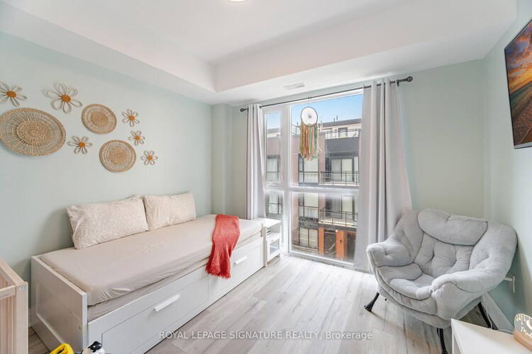 Modern 2-Bedroom Condo Townhouse with Private Rooftop Terrace in Prime Vaughan Location! Welcome to Oggi Boutique Towns, where contemporary style meets exceptional convenience! This bright and beautifully maintained 2-bedroom, 3-bathroom condo townhouse offers the perfect blend of comfort and modern living across three thoughtfully designed levels. One parking, a locker and underground visitors parking. Step inside to a luxurious entrance and an open-concept main floor featuring 10-foot ceilings, elegant engineered hardwood flooring, and pot lights throughout, creating an airy and sophisticated feel. The spacious kitchen is a chef's delight with quartz countertops, stainless steel appliances, ample storage, and a centre island with breakfast bar-ideal for casual dining or entertaining. The cozy living and dining areas flow seamlessly, with access to a private balcony and a powder room for guests. Upstairs, you'll find two generously sized bedrooms. The primary suite includes a walk-in closet and a spa-inspired ensuite bath, offering a private sanctuary to unwind. The second bedroom currently set up as a guest room is perfect for a home office, nursery, or guest suite. A second full bathroom completes this level for added convenience. Discover a rare find in the city - your very own private rooftop terrace! Located on the third level, this exclusive outdoor retreat is perfect for unwinding, summer BBQs, or entertaining guests under the stars. A true gem that's hard to come by! Enjoy the ease of one parking spot and one locker, along with unbeatable access to Highways 400/407/427, Vaughan Metropolitan Centre subway, TTC, shopping, restaurants, libraries, and parks-all just steps from your door. This is more than just a home-it's a lifestyle. Don't miss the chance to call this stunning space your own!