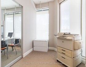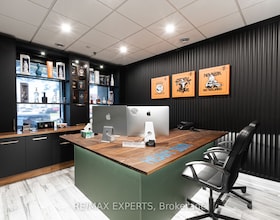 Welcome to this amazing unit used as a Builder's design centre - 3 offices with built-in premium cabinets & desks on main floor! Front office area fea